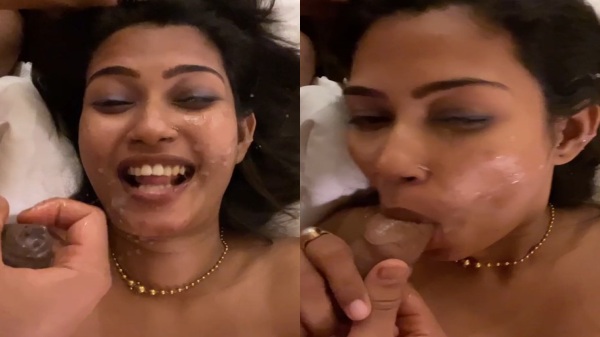 Desi sexy girl ka blowjob cum facial or cum eating