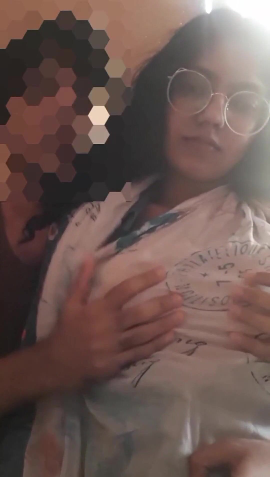 Desi sexy chasmish girl k boobs ko chusa or dabaaya