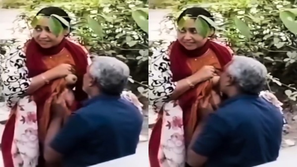Tharki budhe uncle ka affair ish sexy jawan aunty k sath chal raha hai. Dono roj saahm ko chup chupke park mai milte hai jaha tharki uncle or aunty dono ek dusre k sath romance karte hai. Aaj bhi tharki uncle ish sexy aunty se shaam ko park mai mile jaha uncle k aage aunty apne bade boobs ko nikaal rakh deti hai or uncle maje k sath boobs ko chusne lagte hai.