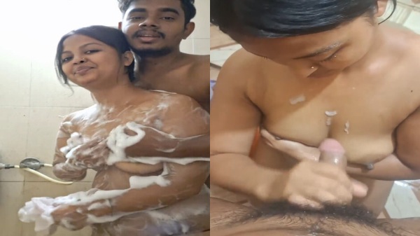 Apni jawan sexy biwi k sath bathroom mai bath lete hue sex ka maja le raha hai pati dekhe ish bengali couple ka bathroom sex ko. Apni patni k sath bathroom mai nanga hoke pati uske sath romance karte hue uske bade boobs ko chusne laga. Fir dono ek dusre k badan mai sabun laga ek dusre ko nahalaate hai or khade khade chudai ka maja lete hai. Fir sexy biwi pati k lund k aage baith uska lund ko hilaate hue uska lund ka maal apne boobs k upar jhadwaati hai.