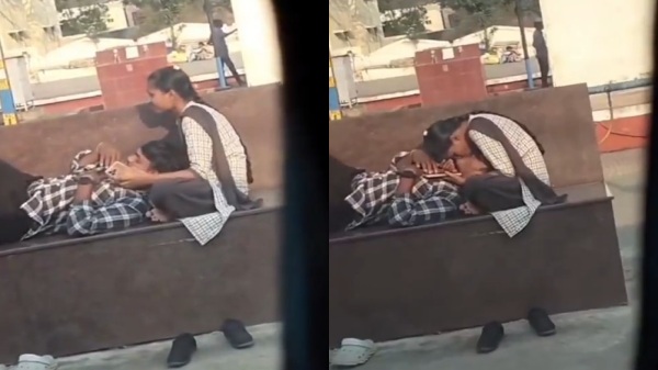 Jawan sexy ladki apne boyfriend k sath college k baad ghumne railway station mai aai. Jawan ladki apne boyfriend ko apne godi mai litaati hai or bade hi pyar k sath uske balo ko sahalaati hai or galo ko sahalaati hai. Fir sexy ladki apne boyfriend k mathe ko chumti hai or bade pyar se apne boyfriend k otho ko kiss karte hue apne boyfriend k sath khulle mai karti hai romance or koi chupke se dono ka video banaata hai.